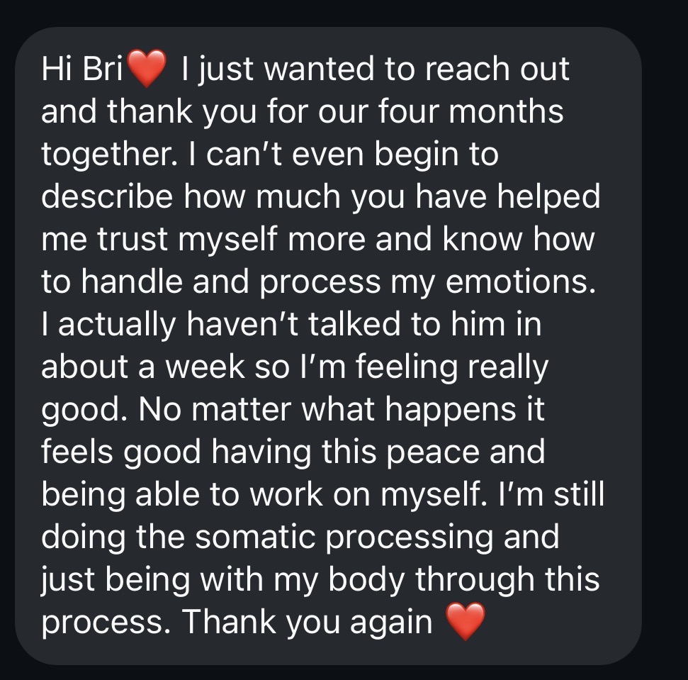 You will finally understand why it’s been so hard to let go (hint: it’s not you - it’s your nervous system) and you’ll finally understand how to lead yourself tangibly toward healthy love and break this cycle for good.